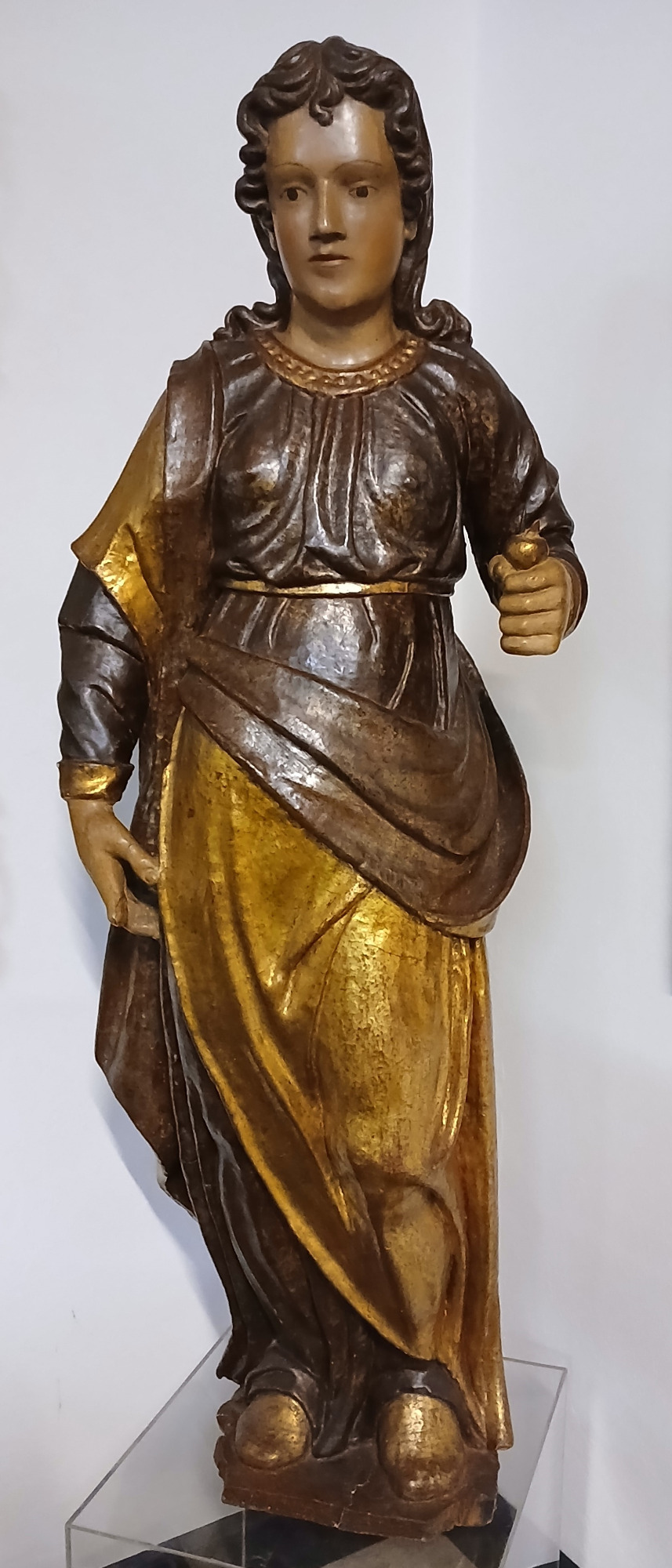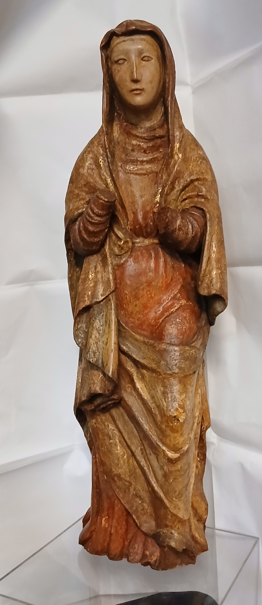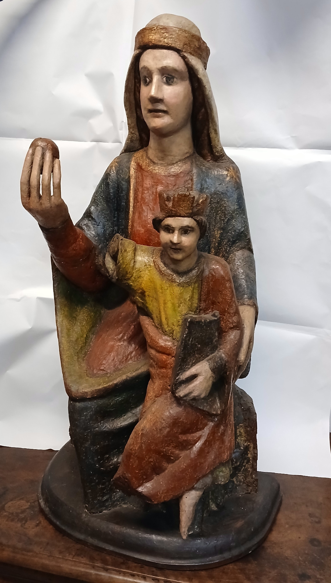 Scultura in legno policromo, alt. cm.30x10x31. Alto Veneto fine del XIV secolo.